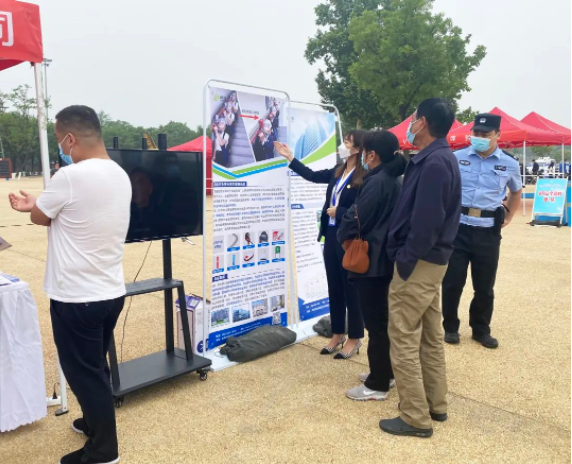 活動展臺區,工作人員現場講解咸潤“高樓應急安全逃生智聯系統”的結構組成、使用原理、操作方法等。該項目在創新能力、應用成果等方面解決高樓應急自救逃生的突出效果,成為參觀群眾熱議的焦點。