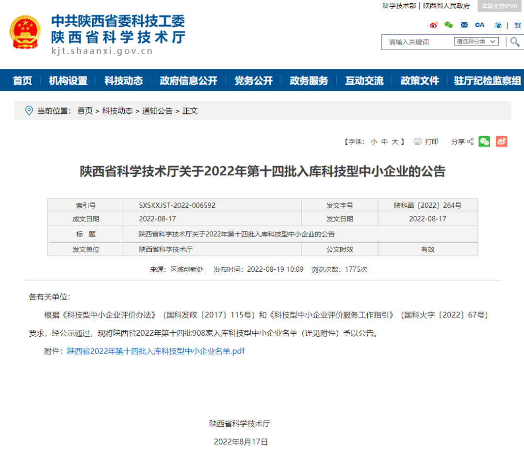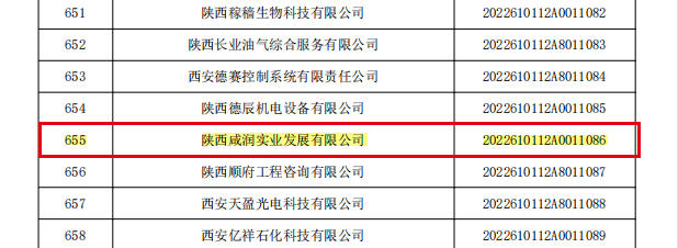 2022年8月19日,陜西省科學技術廳根據《科技型中小企業評價辦法》(國科發政[2017)115號)和《科技型中小企業評價服務工作指引》(國科火字(2022)67號)相關規定,公告了“陜西省2022年第14批655家入庫科技型中小企業名單”。陜西咸潤實業發展有限公司成功入庫,認定為“科技型中小企業”。此次認定成功,不僅是對陜西咸潤自主研發、自主創新上的肯定,同時也讓咸潤在應急安全研發的領域邁上了新的臺階。